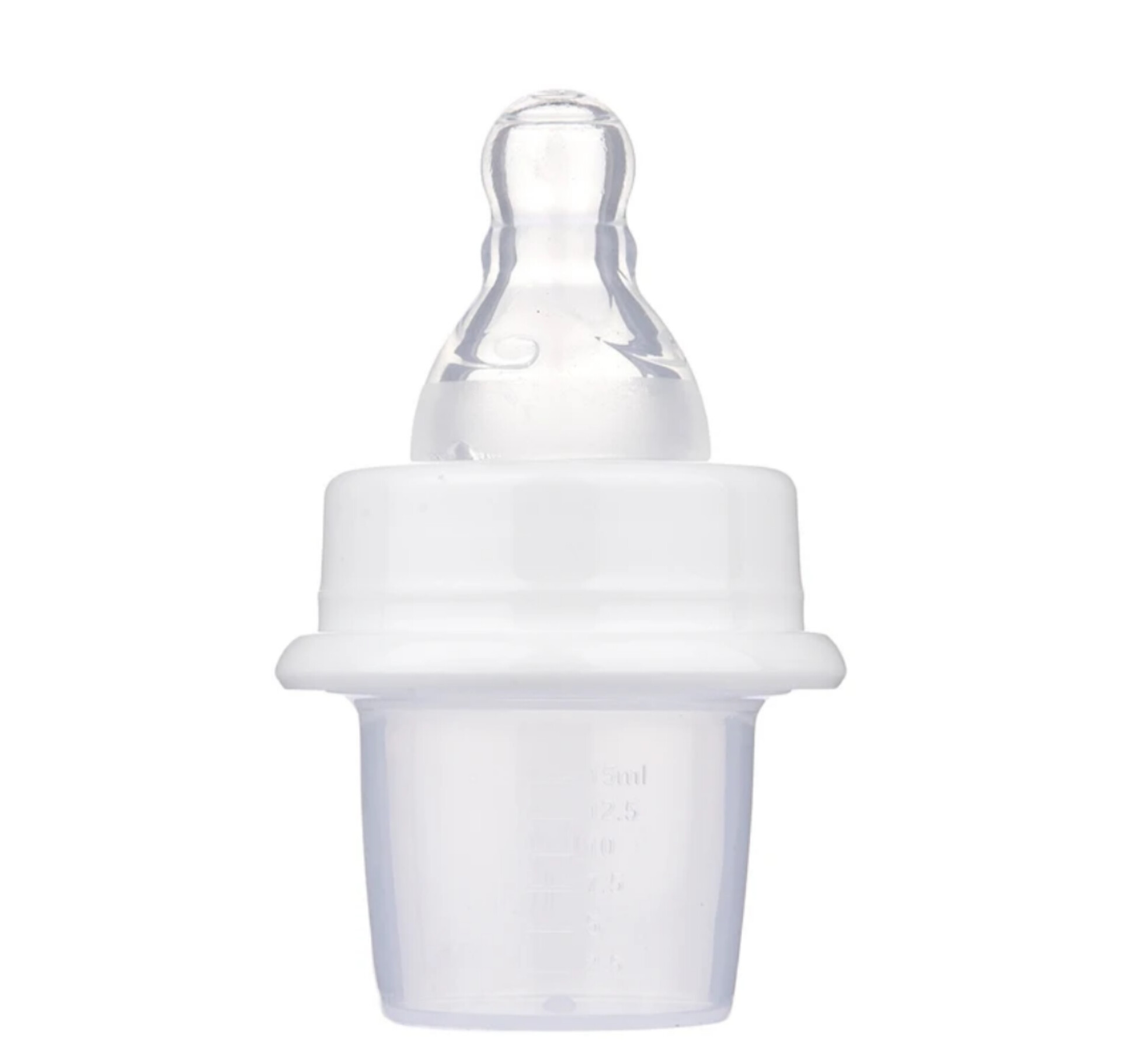 گنجایش ۱۵ میلی لیتر دارای سری جداگانه مشبک برای داروهای معلق در آب دارای سرپستانک گرد سیلیکونی دارای درجه بندی