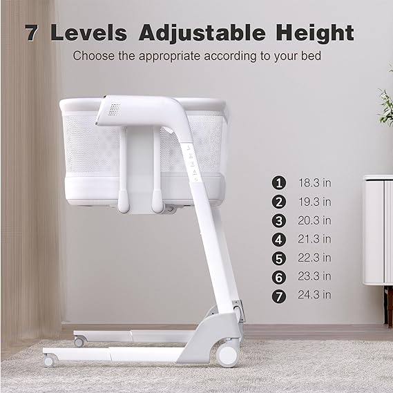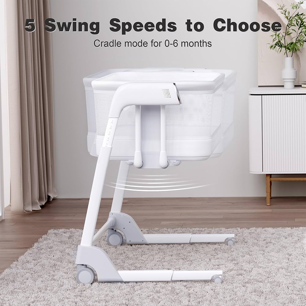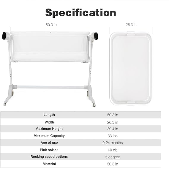 تخت مناسب استفاده از بدو تولد تا 9 کیلوگرم فضای پارک مناسب استفاده تا 18 کیلوگرم قابلیت تنظیم ارتفاع در 7 حالت متفاوت دسترسی بهتر مادر با باز کردن دیواره کناری تخت حرکت نوسانی کاملاً بیصدا با 5 سرعت دارای تایمر قابل تنظیم 15، 30 و 60 دقیقهای دارای توری یا پشهبند یکپارچه برای آرامش کودک دارای پنجره مشبک برای تهویه بهتر تخت دارای پنل موسیقی و امکان اتصال با بلوتوث