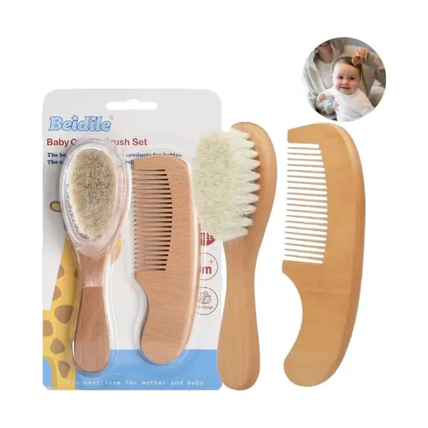 ست شانه برس چوبی نوزادی دو تکه beidile الیاف طبیعی