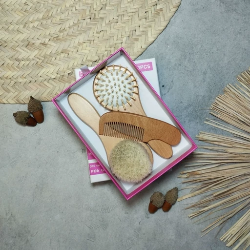 ست شانه برس چوبی نوزادی گرد سه تکه